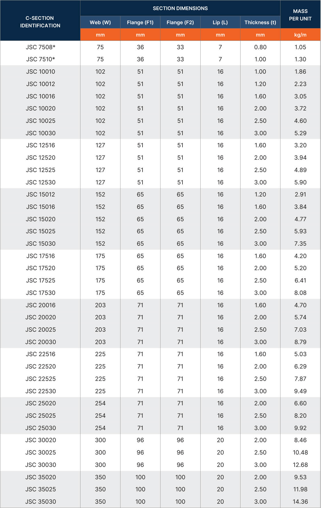 The equal flanges of Cee Purlins are suitable for simply supported spans but not suitable for lapping.